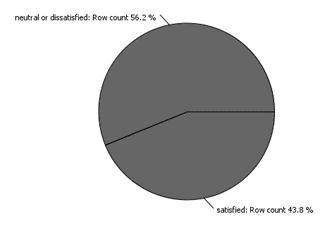 The following pie chart was created to show the overall percentages of customer satisfaction within the dataset. If the data is unbalanced this can lead to overtraining the data to predict one class of sentiment.